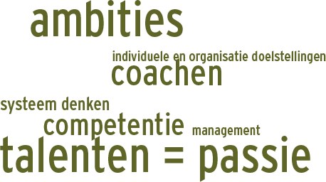 Competenties zijn een combinatie van kennis, vaardigheden en innerlijke vermogens die van belang zijn voor het succes van de organisatie. Hierbij is het essentieel dat de ambities van de organisatie en de persoonlijke motieven en competenties gekoppeld worden. Wanneer iemand intrinsiek gemotiveerd is en zijn haar passie en motivatie inzet wordt de ontwikkeling vaak opgepakt. Is de visie van de organisatie duidelijk? Is deze visie vertaald naar afdelings- en teamdoelstellingen? Pas dan is het mogelijk om de persoonlijke ambities en de typische competenties te koppelen. Het opstellen van een persoonlijk ontwikkelingsactieplan en uitdagende en ambitieuze ontwikkelingspunten kan gestart worden. Nog steeds hebben veel organisaties functiebeschrijvingen. Kenmerkend is dat met name taakgebieden aangegeven worden en niveau. Deze omschrijvingen gaan uit van beperkingen. Competentiemanagement gaat uit van typische succesvolle en onderscheidende karakteristieken. Het traject, - hoe beweegt iemand en/of de organisatie zich naar een gewenste situatie-, is een ontwikkelingstraject en een resultaatverbeteringstraject. De stijl, het begeleiden van de ontwikkeling is typisch coaching: de ander in beweging krijgen door te leren (cq veranderen).
